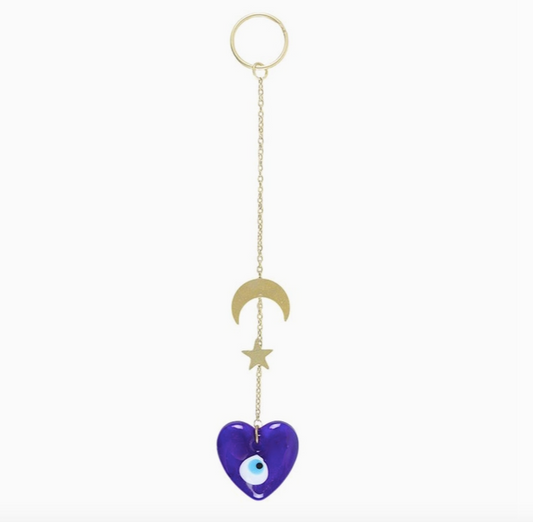 All Seeing Eye Glass Heart Hanging Decoration – Celestial Window or Wall Ornament
